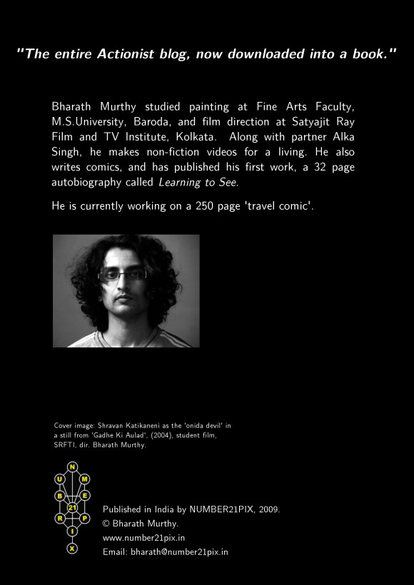 September 17, 2009September 17, 2009 Bharath Murthy The Actionist- Collected Blog Writings- Back Cover Share this:Share Share on Facebook (Opens in new window) Facebook Share on X (Opens in new window) X Share on Reddit (Opens in new window) Reddit Print (Opens in new window) Print