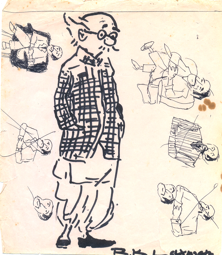 January 27, 2015January 27, 2015 Bharath Murthy R.K.Laxman (1921-2015) – a childhood inspiration Copy of R.K.Laxman’s character ‘the common man’, drawn at Coimbatore, 1987-88, aged 10.